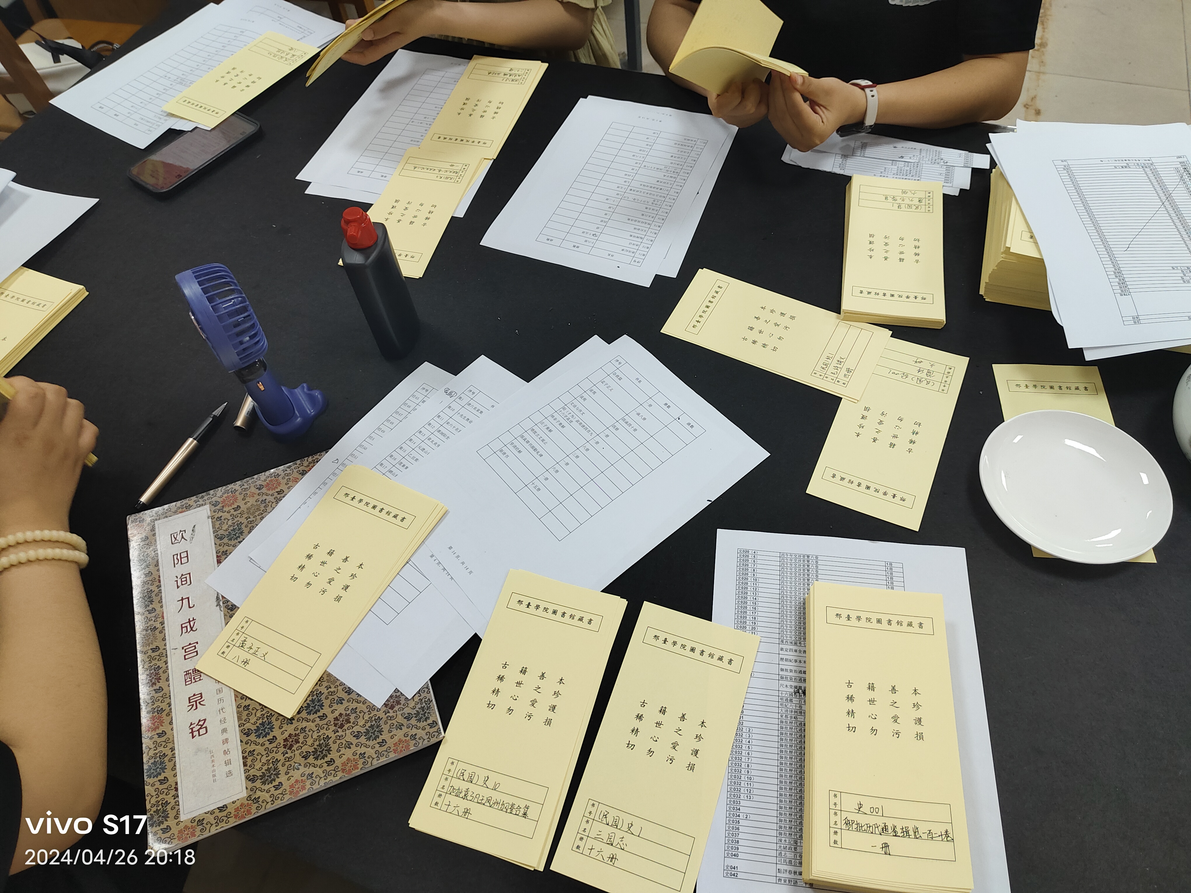 今年4月我们将古籍库进行修缮,所有古籍也重新定做六合函套,对古籍起到更好的保护作用。同时,图书馆也组织开展了“古卷新识”古籍标签书写活动,更好的揭示古籍的基本信息。