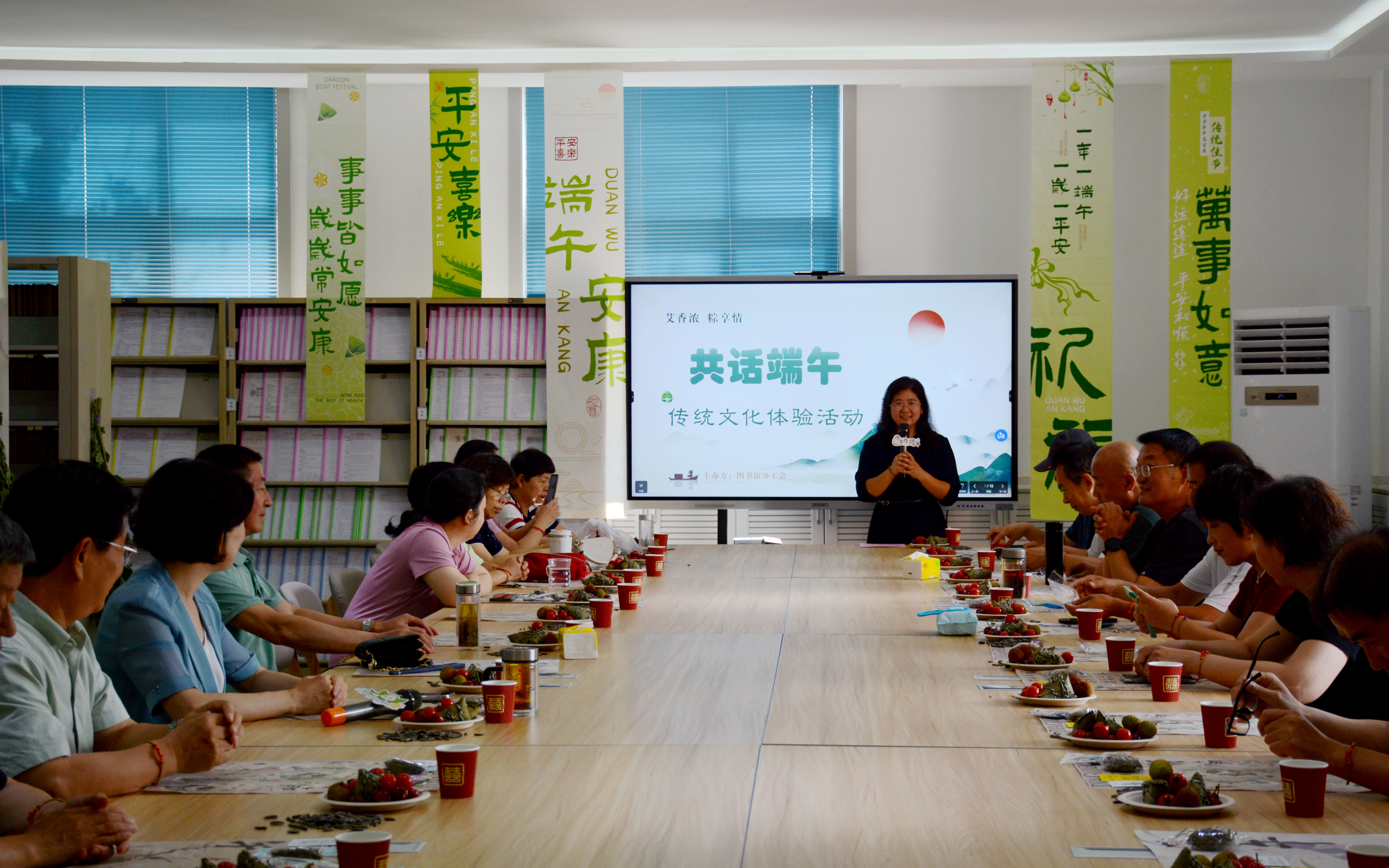 在这艾草飘香、粽叶情长的仲夏时节,6月7日,图书馆分工会在图书馆师范教育资料中心成功举办“共话端午”传统文化体验活动。此次活动旨在通过沉浸式体验端午节传统民俗文化,让大家深度了解和感受到中国优秀传统文化的魅力,增进团队凝聚力。